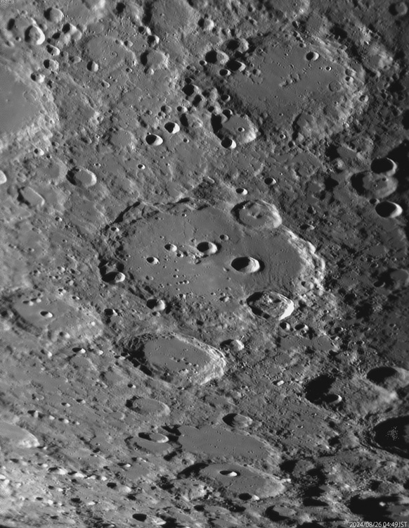 | 月齢22の下弦の月の月面拡大写真です。 夏の明け方はシーイングが良く細部が写りました。 共通データ:Meniscas180 Abbe2xBarlowlens UV/IR-Cut filter ZWO ADC ZWO ASI178MM |