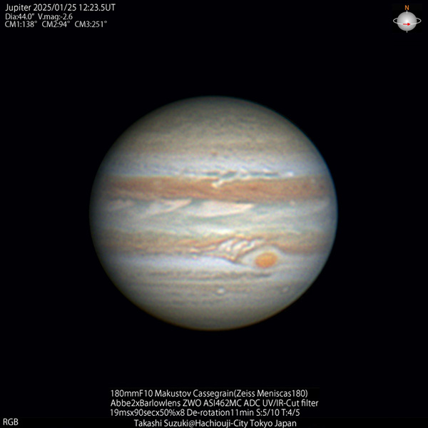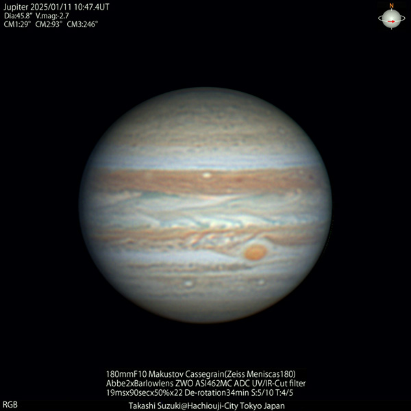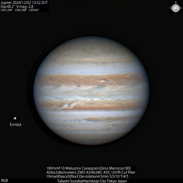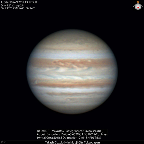| 2024年の木星の衝は12月8日。おうし座にあって地平高度は高いがシーイングの悪い冬季のため良像が得られることが少なかったが木星面は変化に富み9月にはSED
